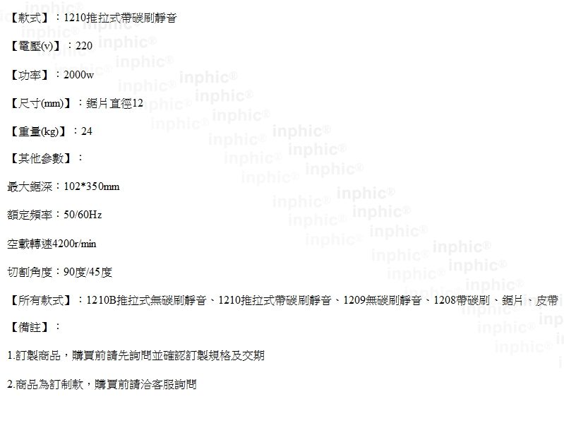 INPHIC-機臺超靜音電機鋁型界鋁機機器材切割機-1210推拉式帶碳刷靜音
