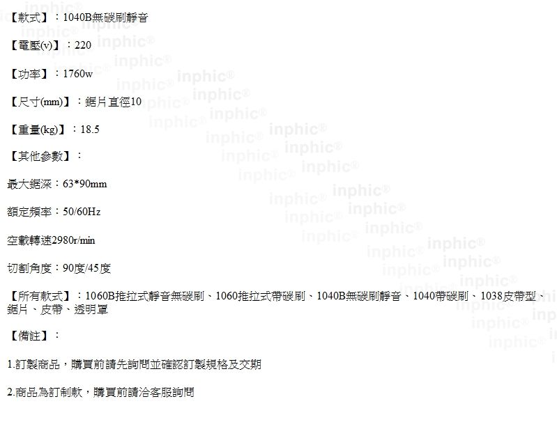 INPHIC-電機超靜音界鋁機機器材切割機鋁型-1040B無碳刷靜音