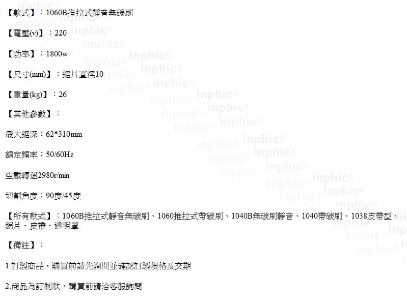 INPHIC-鋁型材切割機超靜音電機界鋁機機器-1060B推拉式靜音無碳刷