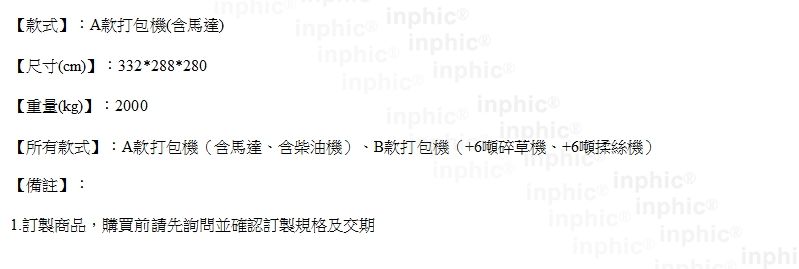INPHIC-小麥打捆機打包機牧草全自動可移動式儲飼料玉米粉碎青貯蒜皮-A款打包機(含馬達)
