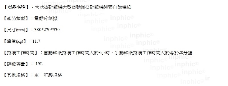 INPHIC-大功率碎紙機大型電動辦公碎紙機80張自動進紙