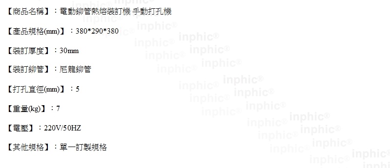 INPHIC-電動鉚管熱熔裝訂機 手動打孔機