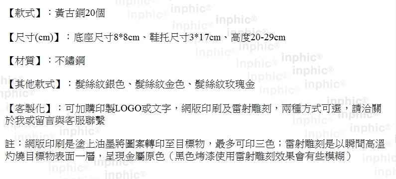 INPHIC-女士高跟鞋百貨女鞋架托不鏽鋼鞋架展示架陳列架-黃古銅20個