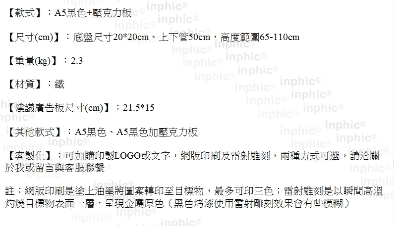 INPHIC-落地式標籤牌促銷資訊牌 櫥窗看板立牌 服裝店廣告看板 海報架 價格牌-A5黑色+壓克力板