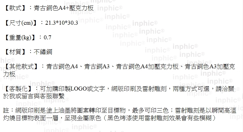 INPHIC-不鏽鋼促銷宣傳展示牌桌牌海報架桌卡桌面廣告看板DM牌-青古銅色A4+壓克力板