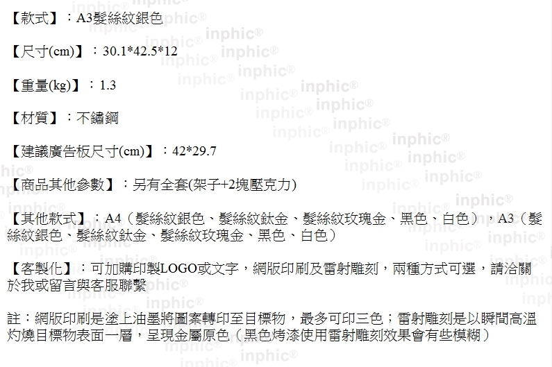 INPHIC-DM展示牌桌面支架 不鏽鋼拉絲臺卡 直立目錄架 促銷板臺牌桌牌立牌菜單架-A3髮絲紋銀色