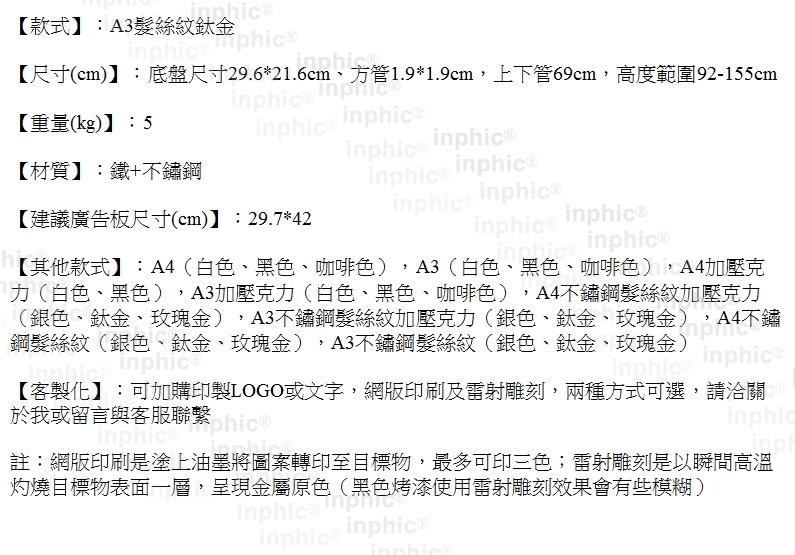 INPHIC-單腳立牌 展示牌 不鏽鋼海報架 髮絲紋拉絲看板 POP架 百貨賣場-A3鈦金