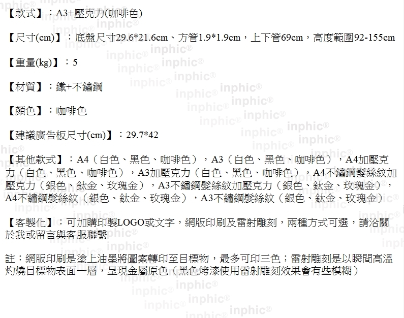 INPHIC-看板POP架 單腳海報架 百貨賣場 不鏽鋼立牌 展示牌-A3+壓克力(咖啡色)