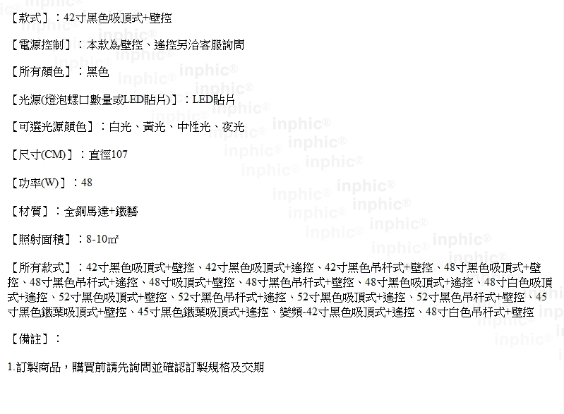 INPHIC-吊扇燈具餐廳客廳臥室吸頂燈美式書房工業風燈飾-42寸黑色吸頂式+壁控