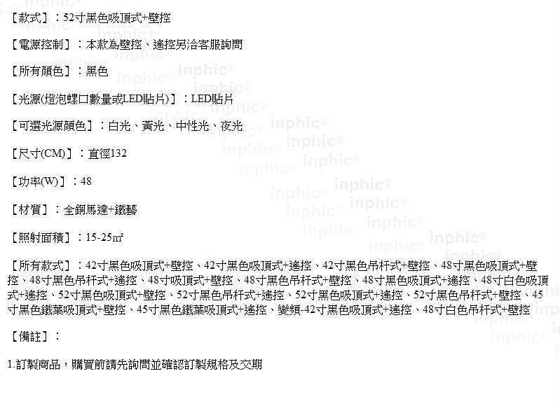 INPHIC-美式吸頂燈具吊扇燈客廳餐廳燈飾臥室工業風書房-52寸黑色吸頂式+壁控