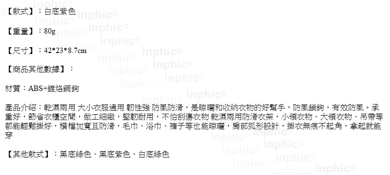 INPHIC-乾濕兩用防滑內衣晾衣架塑膠宿舍防變形無痕衣掛衣架褲架衣櫃衣撐-白底紫色五入