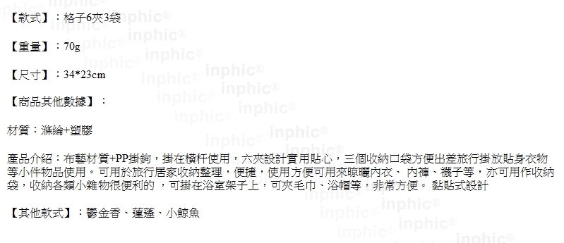 INPHIC-廚房收納壁掛袋便捷旅行浴室掛衣架儲物袋 可掛式收納袋曬衣夾子-格子6夾3袋