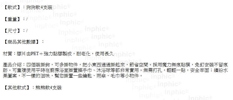 INPHIC-創意創意免釘掛衣架廚房浴室置物牆壁黏貼黏鉤門後壁掛鉤強力黏膠-狗狗款4支裝