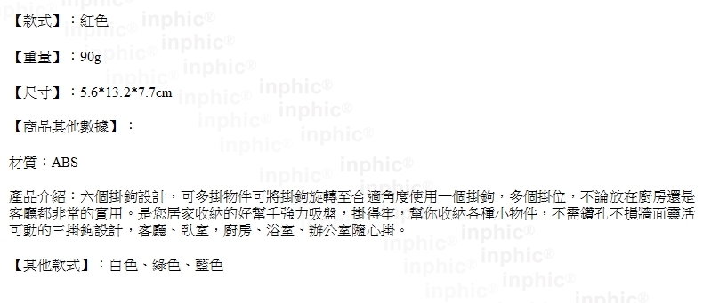 INPHIC-創意免釘牆壁黏鉤塑膠強力掛鉤吸壁掛架浴室置物掛衣鉤門後掛衣架-紅色