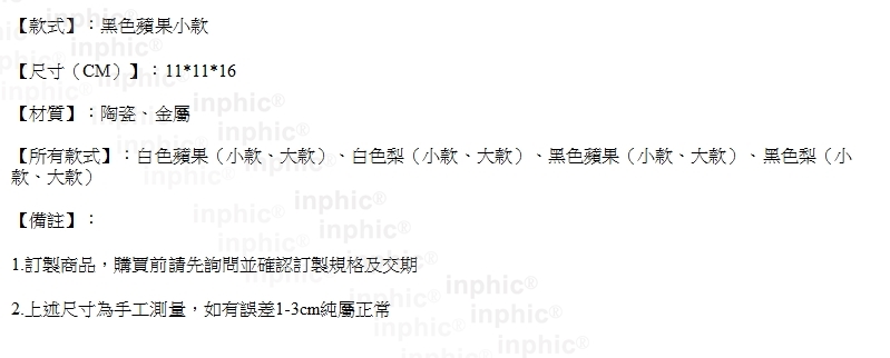 INPHIC-北歐簡約陶瓷現代擺件金屬裝飾品酒櫃水果客廳-黑色蘋果小款