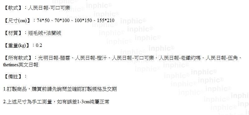 INPHIC-玄關報紙地墊門墊客廳臥室床邊墊茶幾走廊家用簡約-人民日報-可口可樂