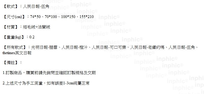 INPHIC-家用門墊客廳簡約茶幾玄關走廊床邊墊報紙地墊臥室-人民日報-伍角