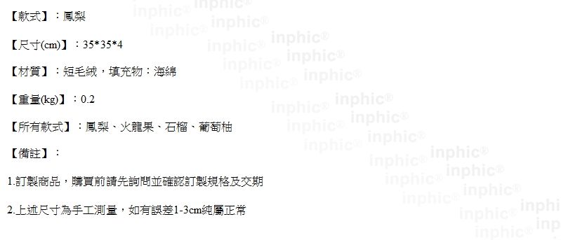 INPHIC-仿真毛絨坐墊火龍果石榴葡萄柚靠墊裝飾擺飾水果抱枕-鳳梨