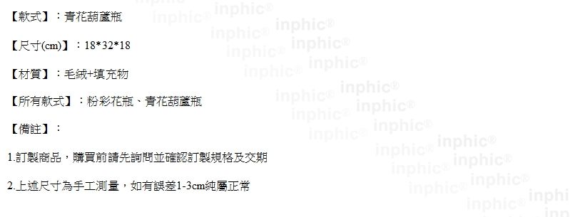 INPHIC-粉彩六面圖花瓶葫蘆瓶仿真擺飾抱枕毛絨玩偶青花瓷古董-青花葫蘆瓶