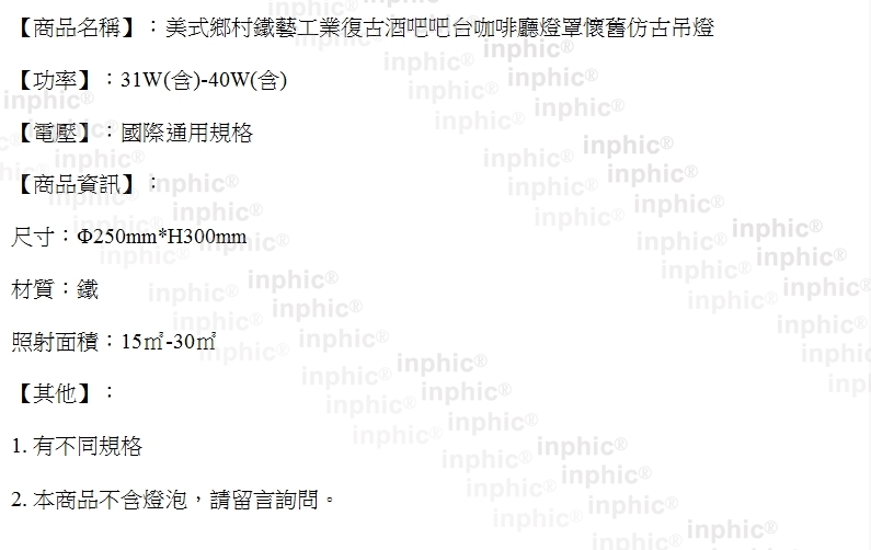 INPHIC- 美式鄉村鐵藝工業復古酒吧吧臺咖啡廳燈罩懷舊仿古吊燈-A款