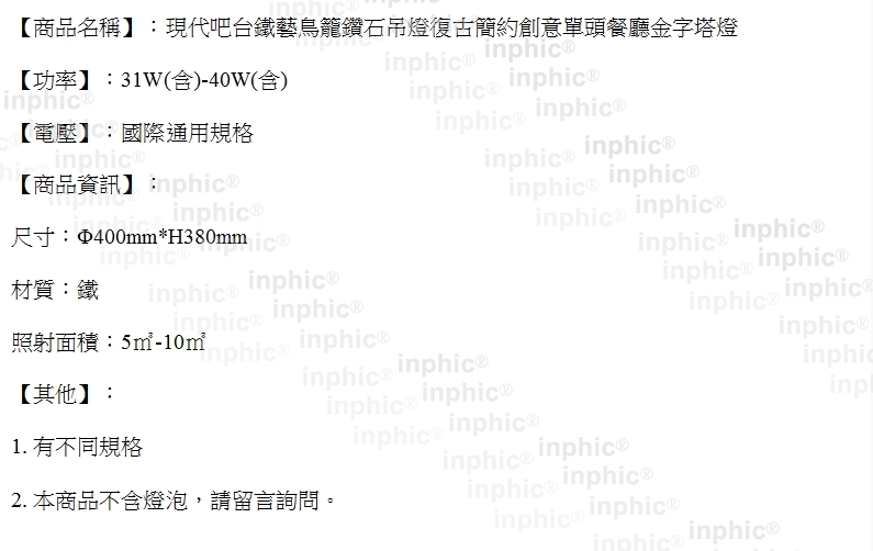 INPHIC- 現代吧臺鐵藝鳥籠鑽石吊燈復古簡約創意單頭餐廳金字塔燈