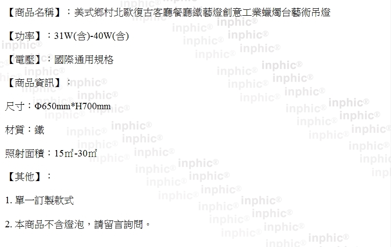 INPHIC- 美式鄉村北歐復古客廳餐廳鐵藝燈創意工業蠟燭臺藝術吊燈