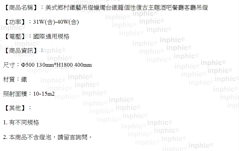 INPHIC- 美式鄉村鐵藝吊燈蠟燭臺鐵籠個性復古主題酒吧餐廳客廳吊燈