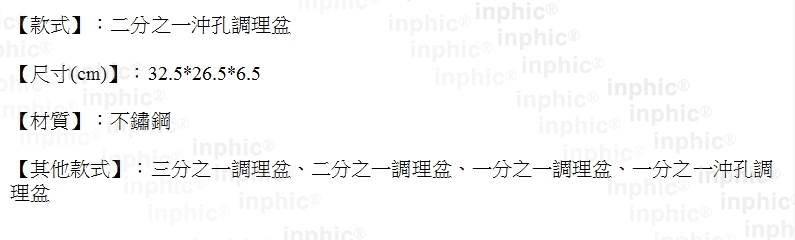 INPHIC-自助餐爐調理盆份數盆不鏽鋼保溫餐爐buffet外燴爐隔水保溫食物盆-二分之一沖孔調理盆